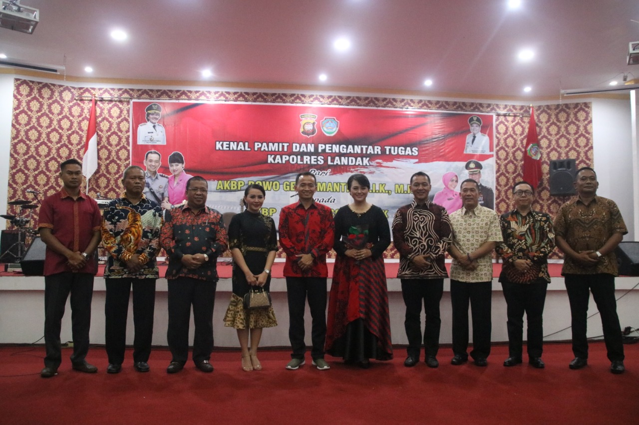 Kapolres Landak yang baru AKBP Ade Kuncoro mengajak jajaran Pemkab Landak, Forkopimda dan masyarakat dapat menerimanya dan keluarga sebagai bagian dari masyarakat Kabupaten Landak dan menjalin kerjasama yang baik dalam mendukung pembangunan di Kabupaten Lnadak.