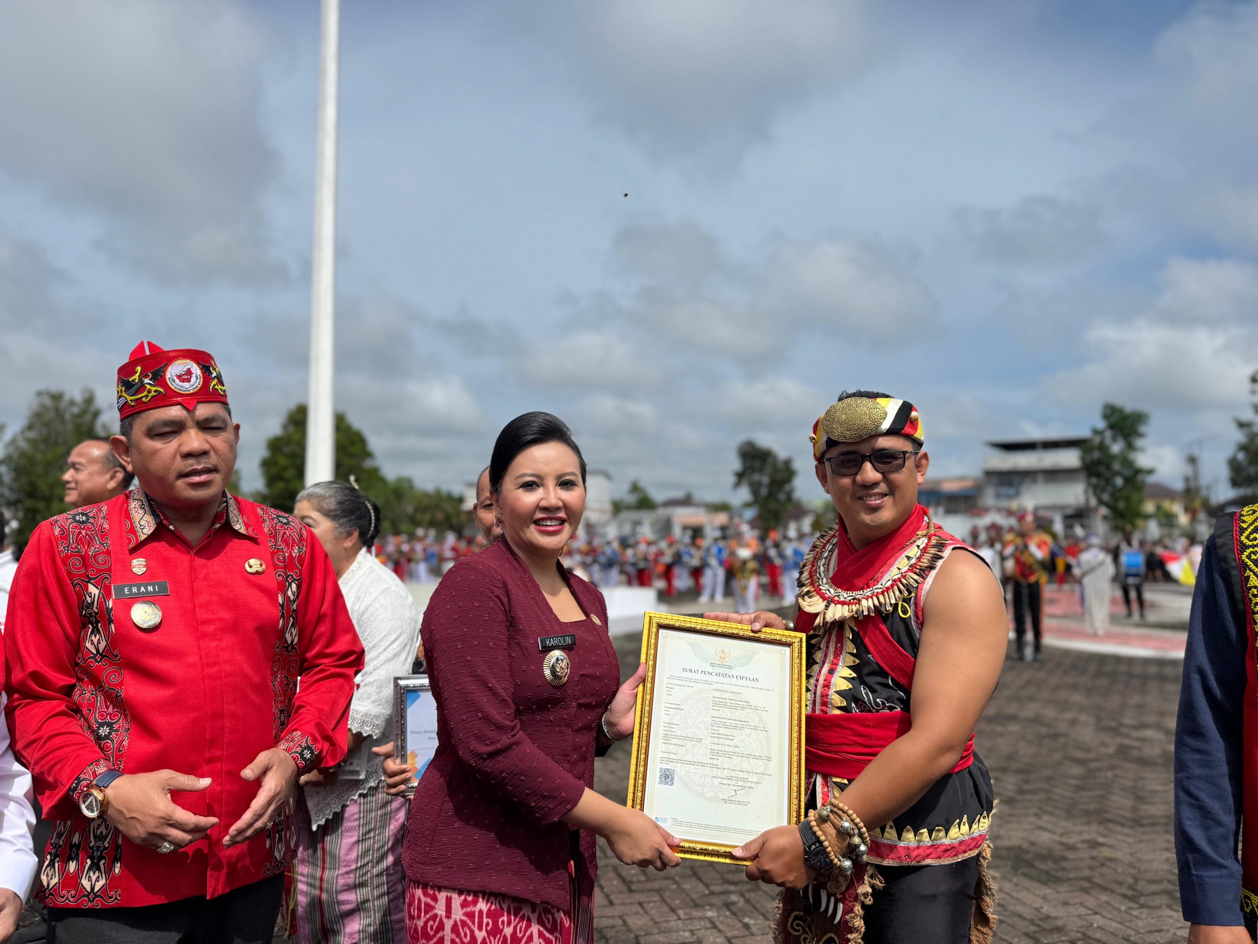 Setelah upacara dilanjutkan dengan penyerahan sejumlah piagam penghargaan kepada Pemerintah Kabupaten berupa penghargaan Pengawasan Arsip Eksternal dari Provinsi Kalbar dan satu unit truk arm roll dari BPD Kalbar. Kemudian penyerahan piagam penghargaan dari Pemerintah Kabupaten Landak kepada sejumlah intinstansi inovatif, penyuluh pertanian teladan, guru dedikatif, tokoh adat dan HAKI seniman dengan total 25 penghargaan.