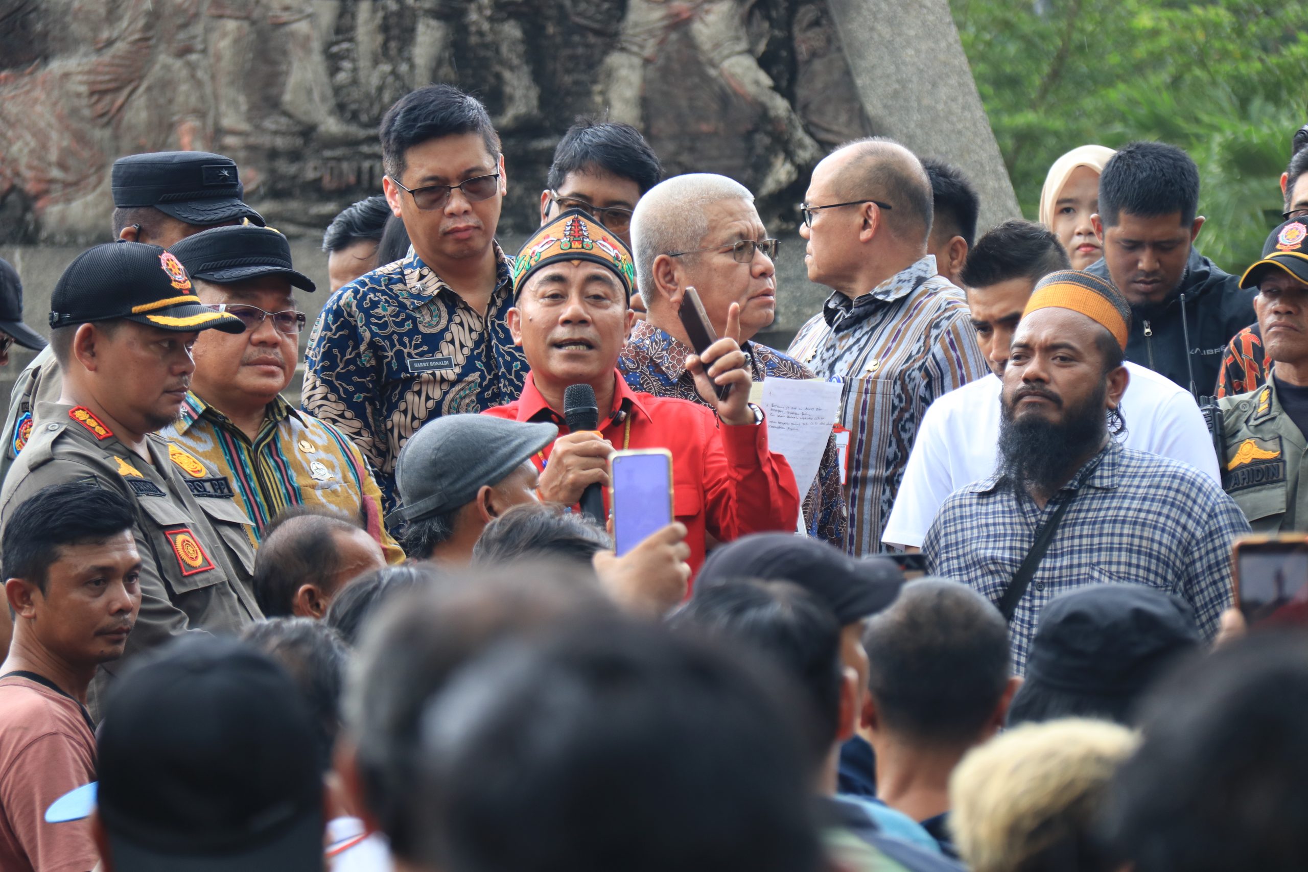 KALIMANTAN TODAY, PONTIANAK- Wakil Gubernur Kalimantan Barat, Krisantus Kurniawan, S.IP.,M.Si., turun langsung menerima massa aksi driver ekspedisi dalam aksi damai di Bundaran Mayor Alianyang, Kamis (16/10/2025).