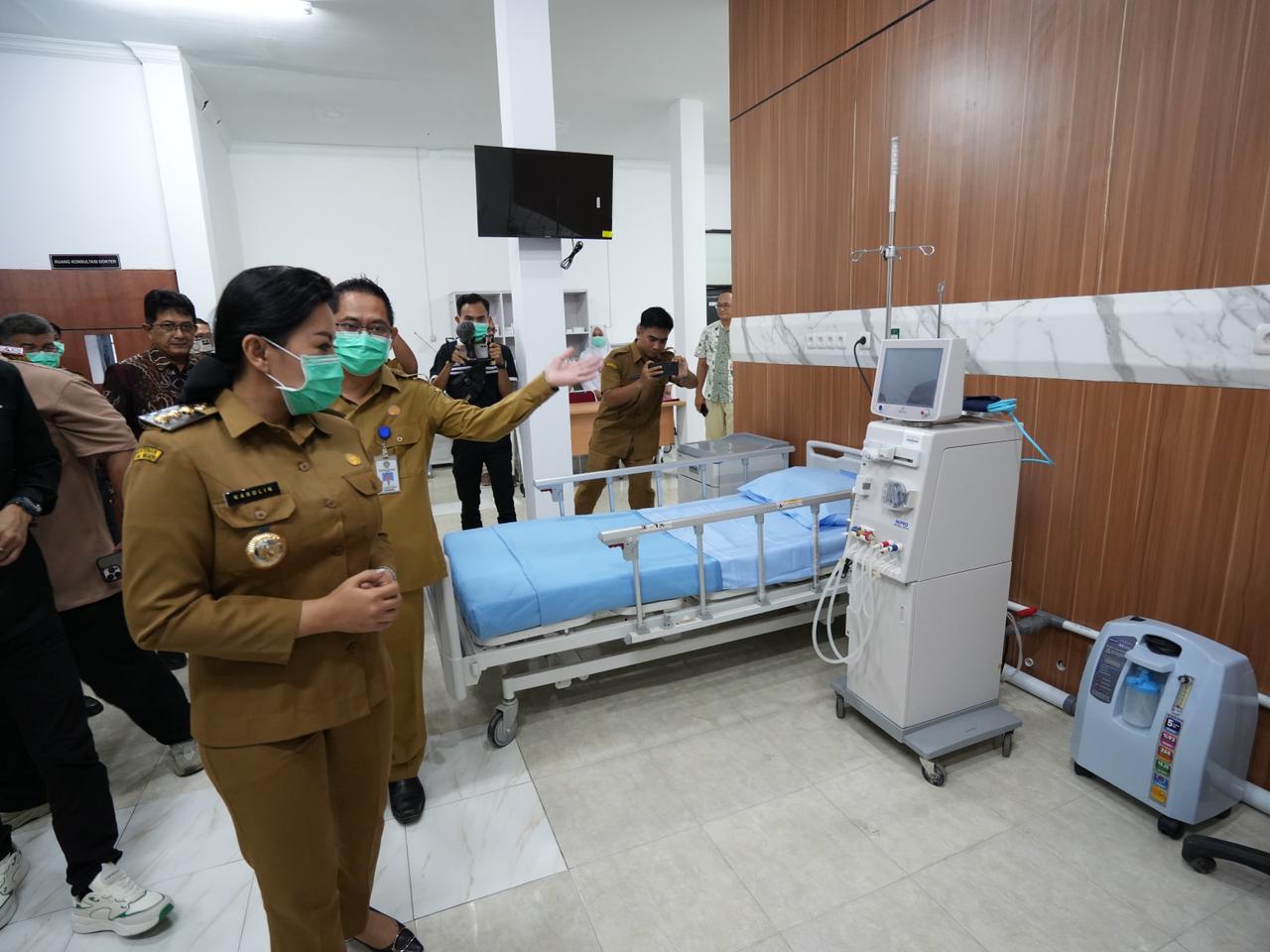 Dalam peninjauan ini, Bupati Karolin berkeliling ruangan Unit Dialisis melihat alat yang telah tersedia termasuk memeriksa ruangan-ruangan yang ada.