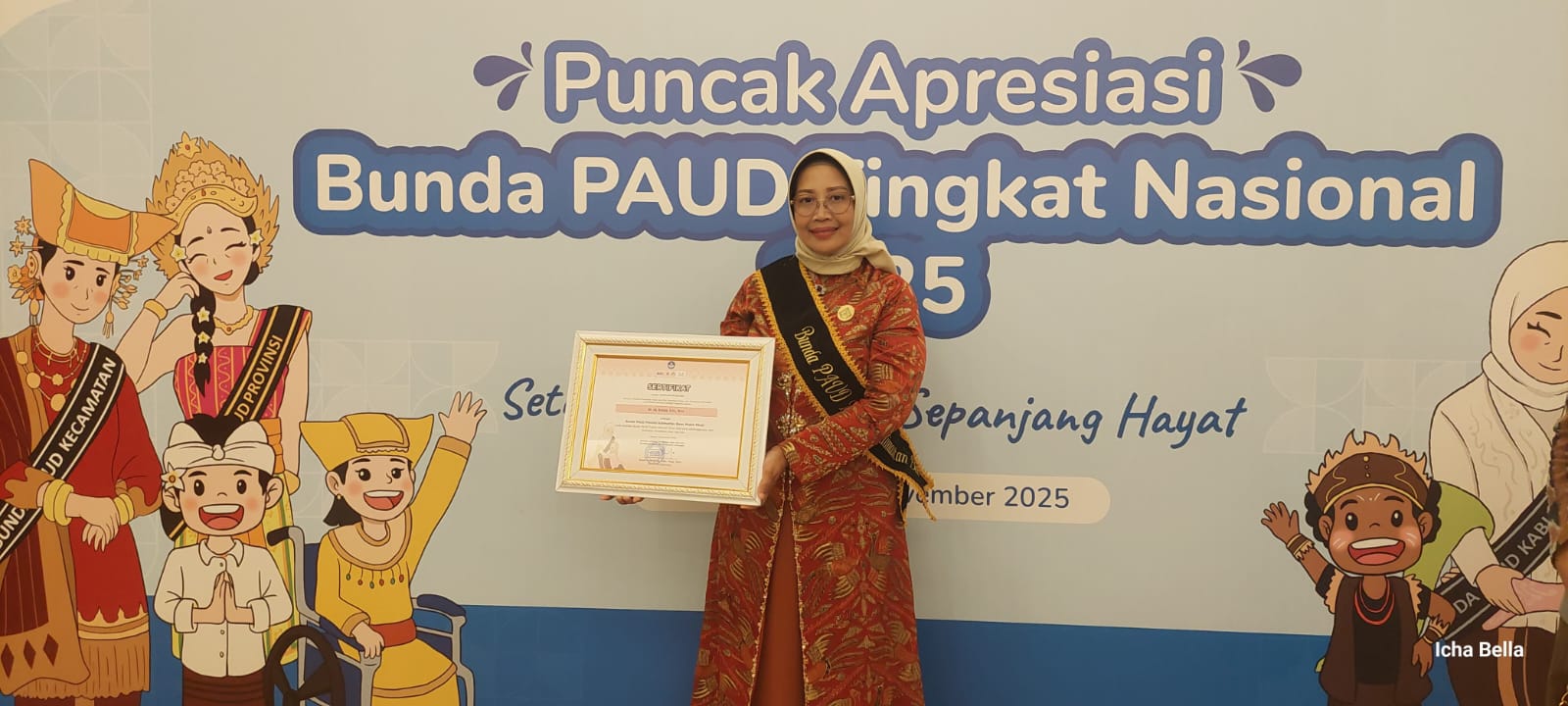 Penghargaan ini diraih oleh Dr. Hj. Erlina, S.H., M.H., pada malam Gala Dinner Apresiasi Bunda PAUD Tingkat Nasional Tahun 2025, di The Sultan Hotel and Residence Jakarta, Rabu (12/11/2025).