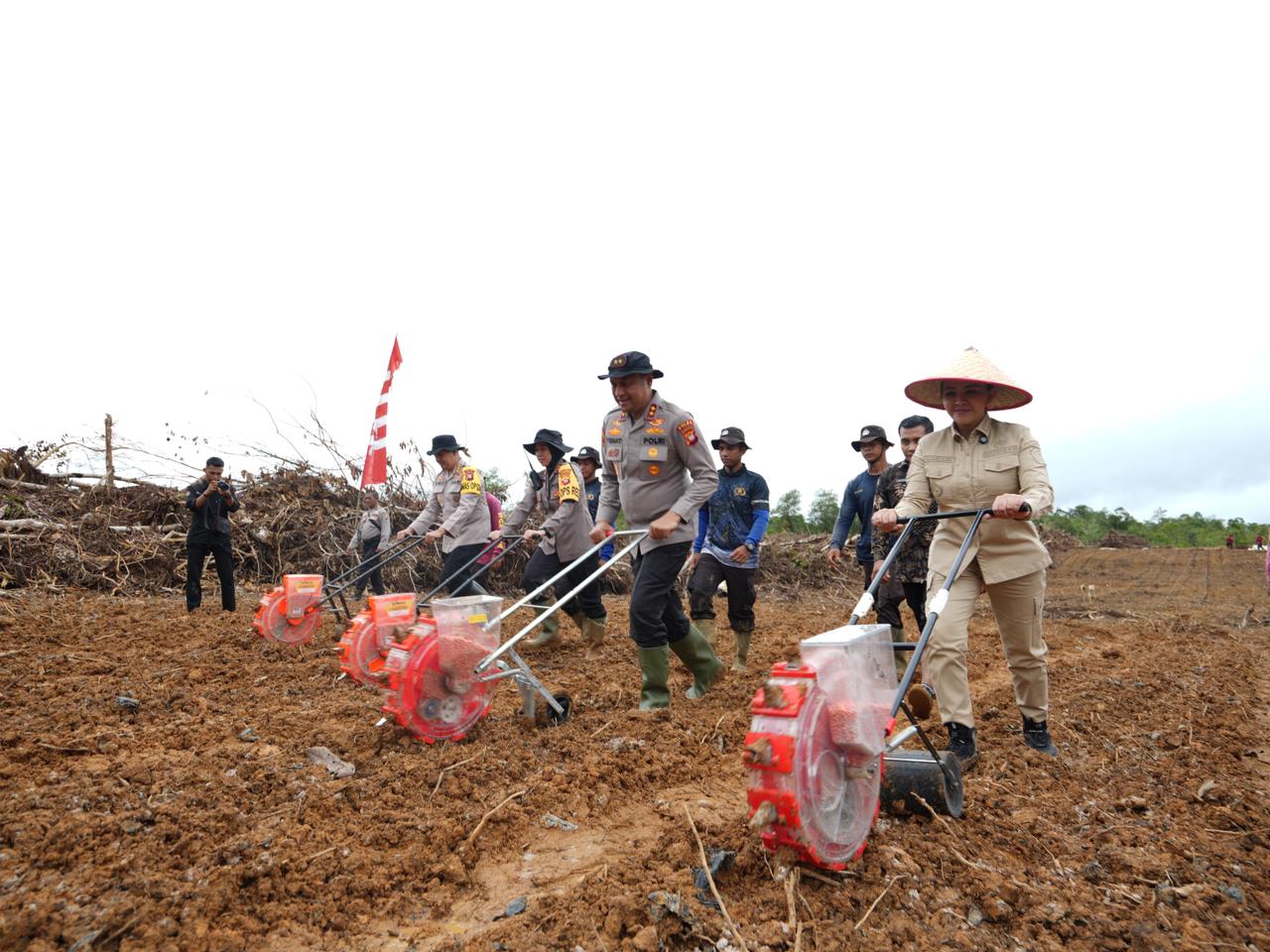 KALIMANTAN TODAY, LANDAK – Bupati Landak Karolin Margret Natasa mendampingi Kapolda Kalimantan Barat Irjen Pol. Pipit Rismanto pada kegiatan asistensi Gugus Tugas Ketahanan Pangan Polda Kalbar bersama Pemerintah Kabupaten Landak yang berlokasi eks PT.Sinar Dinamika Kapuas, Desa Nyiin, Kecamatan Jelimpo, Kabupaten Landak, Kalimantan Barat, kamis (20/11/2025).