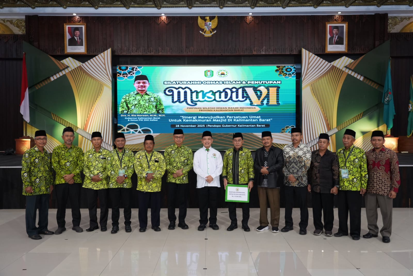 KALIMANTAN TODAY, PONTIANAK – Gubernur Kalimantan Barat, Ria Norsan, secara resmi menutup Musyawarah Wilayah (Muswil) Ke-6 Dewan Masjid Indonesia (DMI) Provinsi Kalimantan Barat, yang berlangsung di Pendopo Gubernur, Jumat (28/11/2025).
