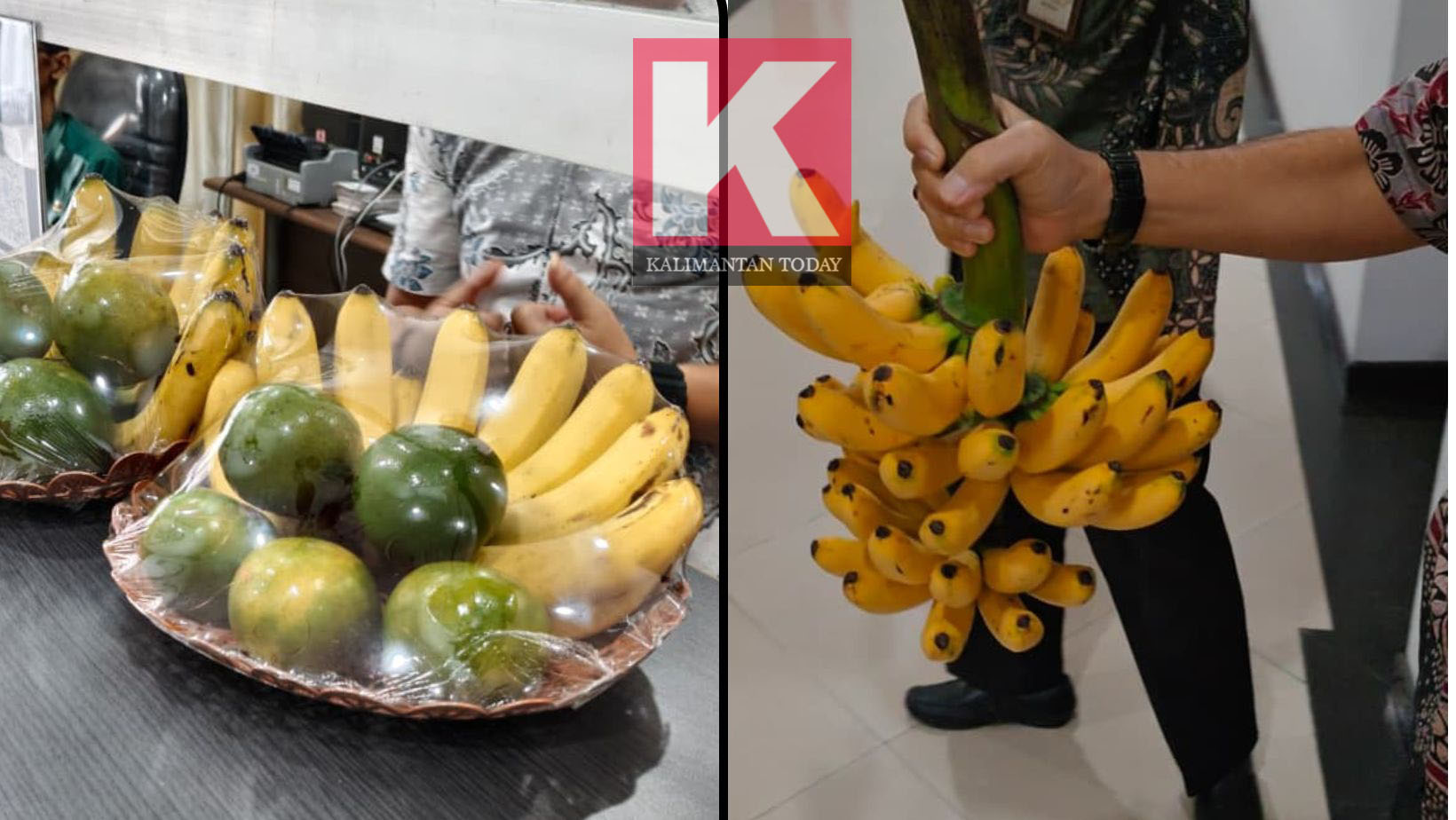 Pantauan Kalimantan Today sejumlah ASN dengan wajah tersenyum tampak masing-masing membawa satu tandan pisang berangan masuk ke ruangan sekretariat di lantai satu.