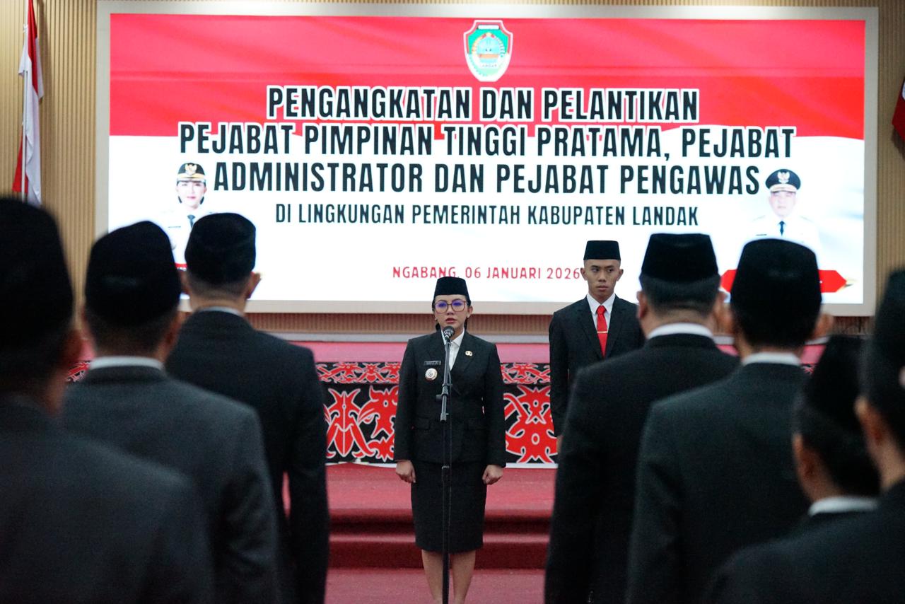 KALIMANTAN TODAY, LANDAK – Bupati Landak Karolin Margret Natasa secara resmi melantik sejumlah Pejabat Pimpinan Tinggi Pratama dan Administrator di lingkungan Pemerintah Kabupaten Landak yang bertempat di Aula Besar Kantor Bupati Landak, Selasa (06/01/2026).