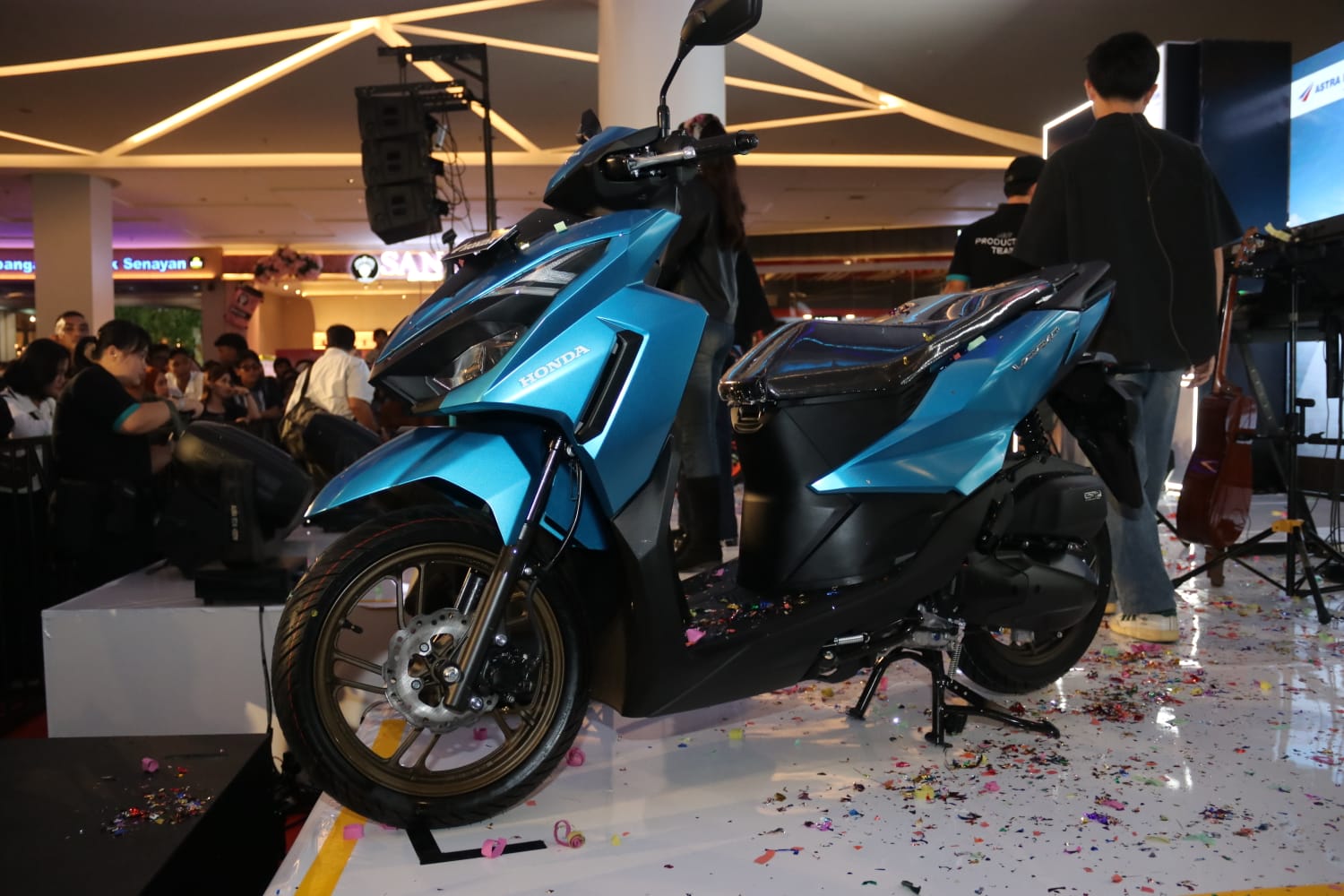Kedatangan Wagub Kalbar yang menggunakan sepeda motor Honda Astrea disambut meriah oleh ratusan warga yang telah berkumpul untuk menyaksikan langsung peluncuran produk terbaru tersebut. Suasana acara semakin semarak dengan hiburan musik, termasuk penampilan penyanyi yang sedang populer, Idgitaf, yang menghibur para pengunjung mall.